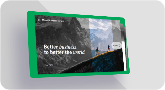 “For all our stakeholders, we seek to empower sustained health and well-being to support the journey toward a better life, drive inclusive economic opportunities that create a more even playing field, and accelerate a sustainable future which preserves the planet we all share. ” - Roy Gori, President & CEO, Manulife INTERNAL