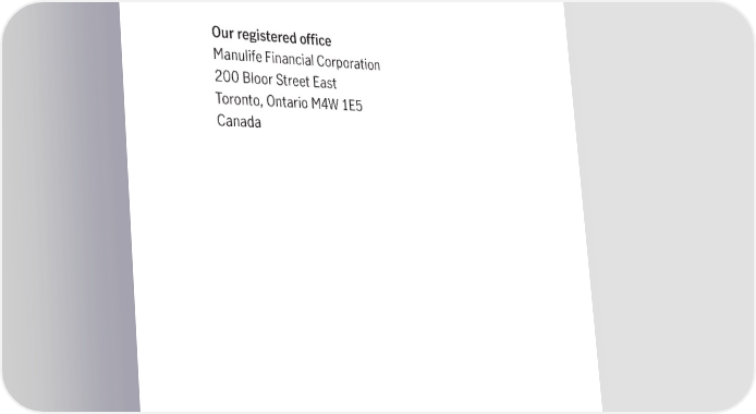 Our registered office Manulife Financial Corporation 200 Bloor Street East Toronto, Ontario M4W 1E5 Canada IR3834E manulife.com